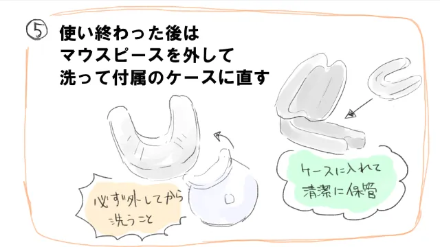- 使い終わった後はマウスピースを外して洗ってから専用ケースに入れる