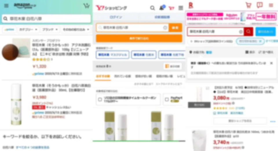Amazonでは白花八草の取り扱いがなく、毛穴とアクネケアのみが購入できます。