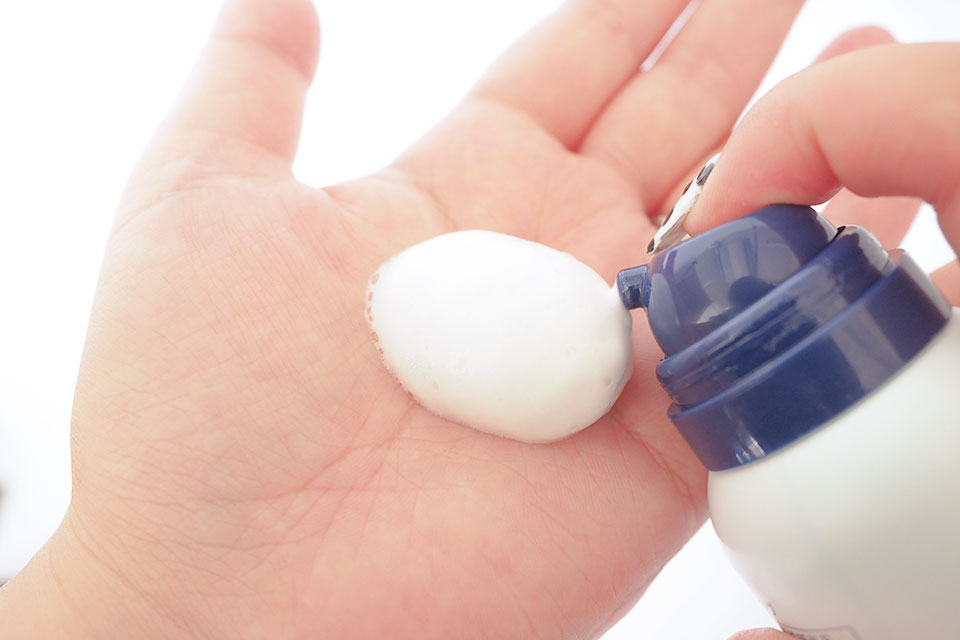 容器を垂直に立てたまま、卵Mサイズ程度の泡を手に取りましょう。