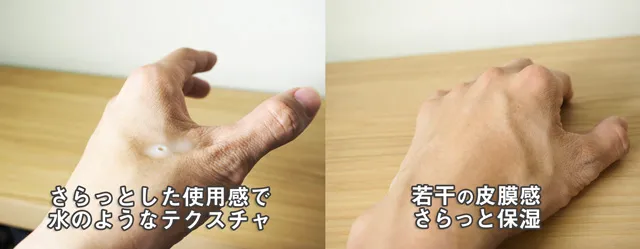 皮膜感が無く、保湿ジェルのようなみずみずしい使用感の虜になること間違いありません。