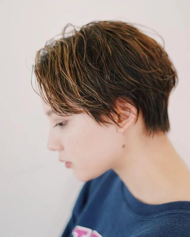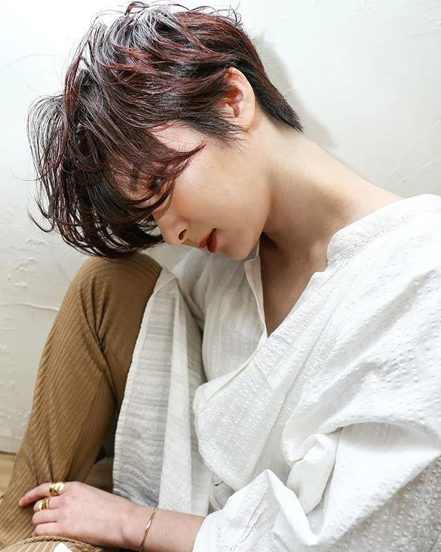 ショートだから下がっている部分の前髪も暑苦しくなく、アンニュイな雰囲気が大人っぽいヘアスタイルです。