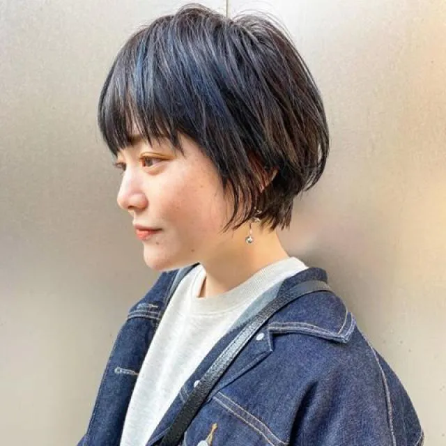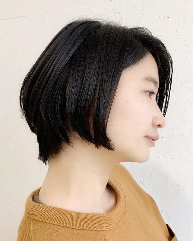 耳が隠れる程度の短すぎないショートボブ。