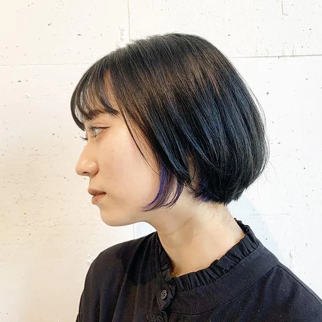 暗髪のワンレンボブ、アイスラベンダーのインナーを併せるベージックスタイルですが、ちょい足しができるのでアレンジは無限大。