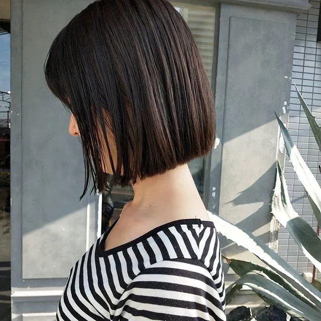 束感を意識したワンレングスボブスタイル。