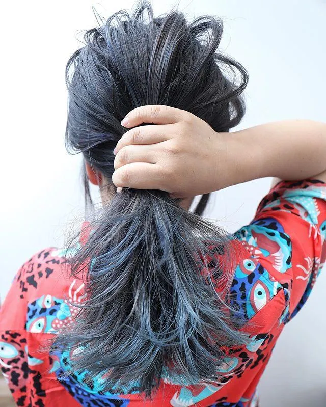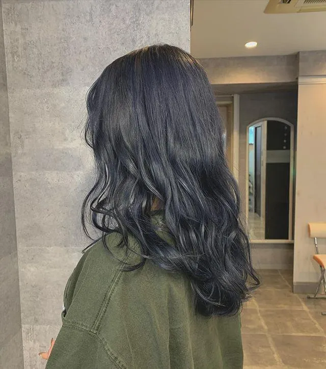ブルーブラックからブルージュになっていくグラデーションカラー。かなり暗髪ですが、重たい印象にならないのがポイントですよね。
