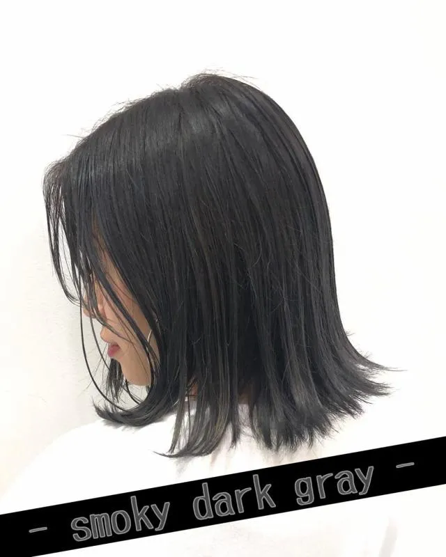 かなりダークめでトーンダウンされているブルージュ。暗髪には、深みのあるブルージュカラーがよく映えます。