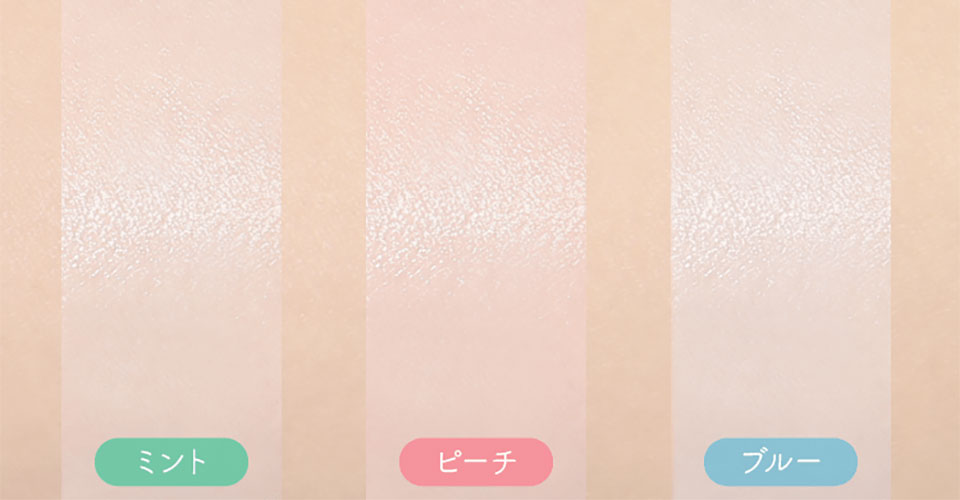 『透明感のブルー』『血色感のピーチ』『色ムラ補正のミント』の3種類から、自分に合った1色を見つけてくださいね。