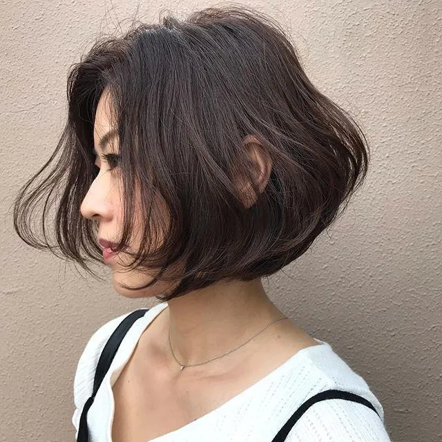 ダークブラウンでクラシカルに、ボブをゆるっと軽くセットすることで決めすぎずこなれ感のある大人のヘアスタイル◎