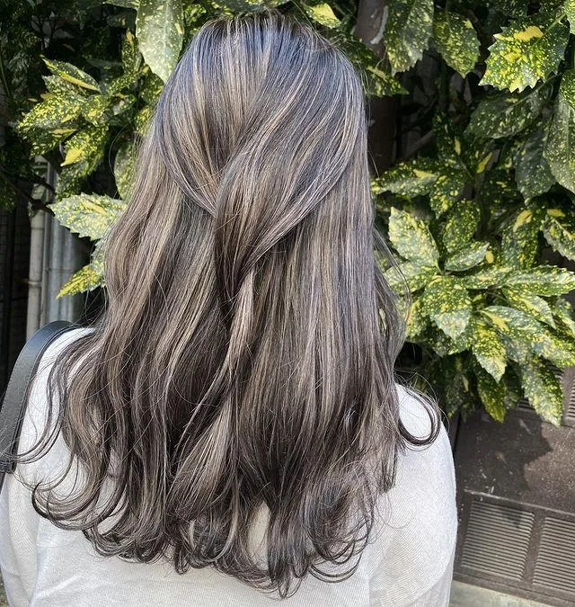 透明感アップに欠かせない魅力的なくすみカラーをハイライトに入れることですっとしなやかさを感じさせるカラーに。