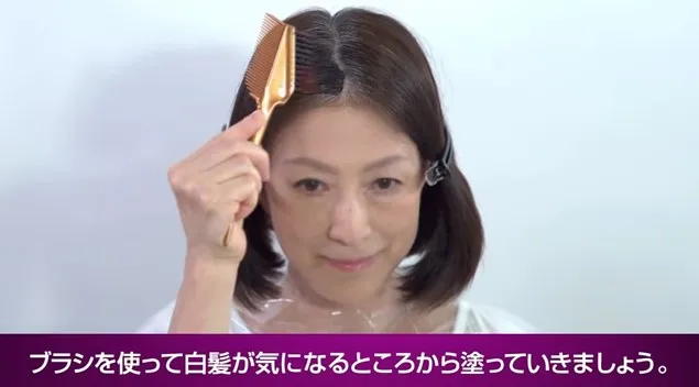 そのまま白髪が気になる部分に塗布していきます。