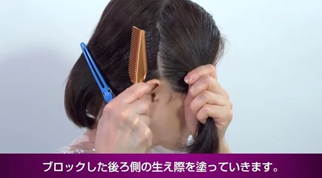 ブロッキングした後ろ側の生え際もしっかりと塗っていきましょう!