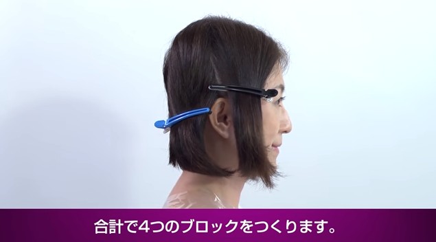 次にヘアクリップをつかって両サイドと後ろを合計4つに分けて止めておきます。