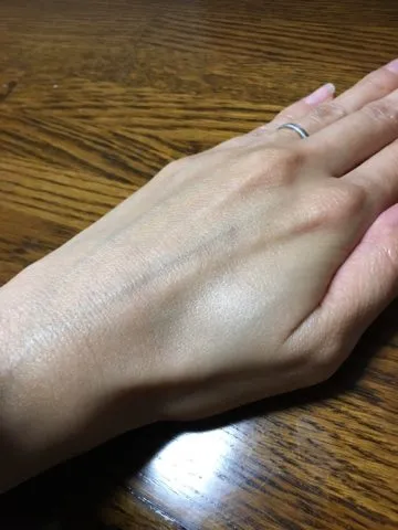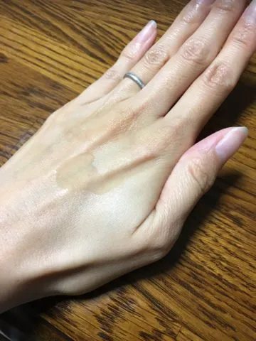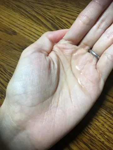 初め手に取った時は、かなりサラサラです。出してすぐつけないと指の隙間からどんどん流れていってしまいます。