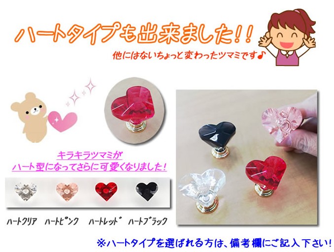 クリスタルタイプだけではなく、キュートなハートタイプやスモーキーな丸タイプも!