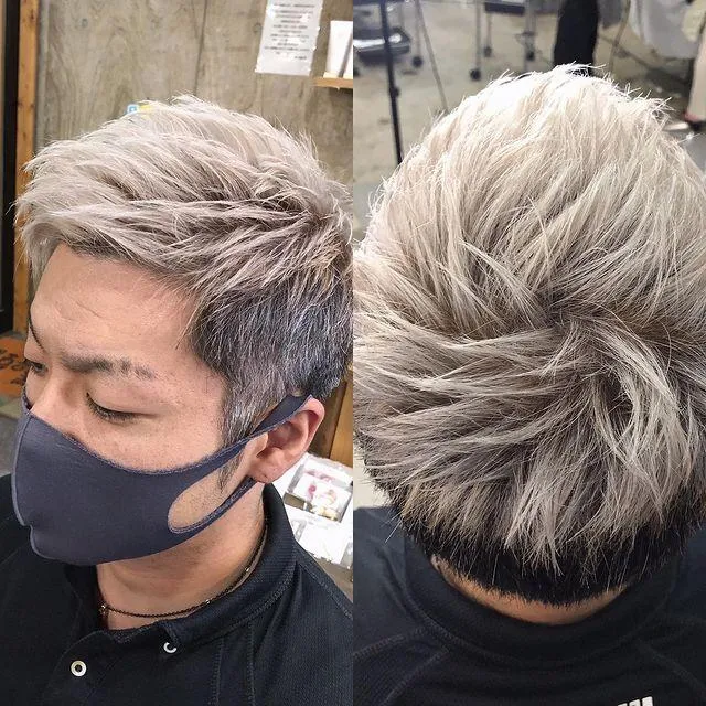 男性におすすめのアッシュ系のカラーはガッツリハイトーンのグレーアッシュ。