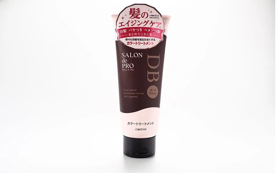 サロンドプロの白髪染めカラートリートメントは、ビゲン(717円)や中国産のサイオス(680円)に次ぐ安さで、カラー間のつなぎやグレイカラーへの移行にも使いやすいアイテムです。