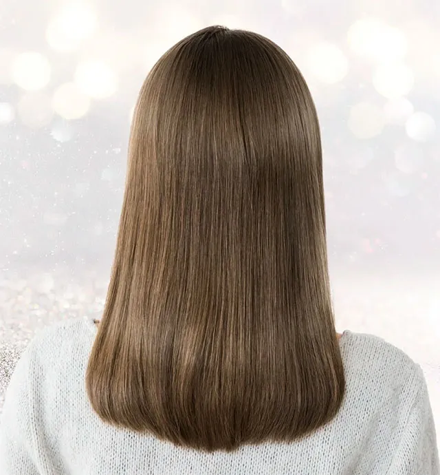 過去にヘアカラーやブリーチを入れたことのない髪では、やや明るめの仕上がりに。