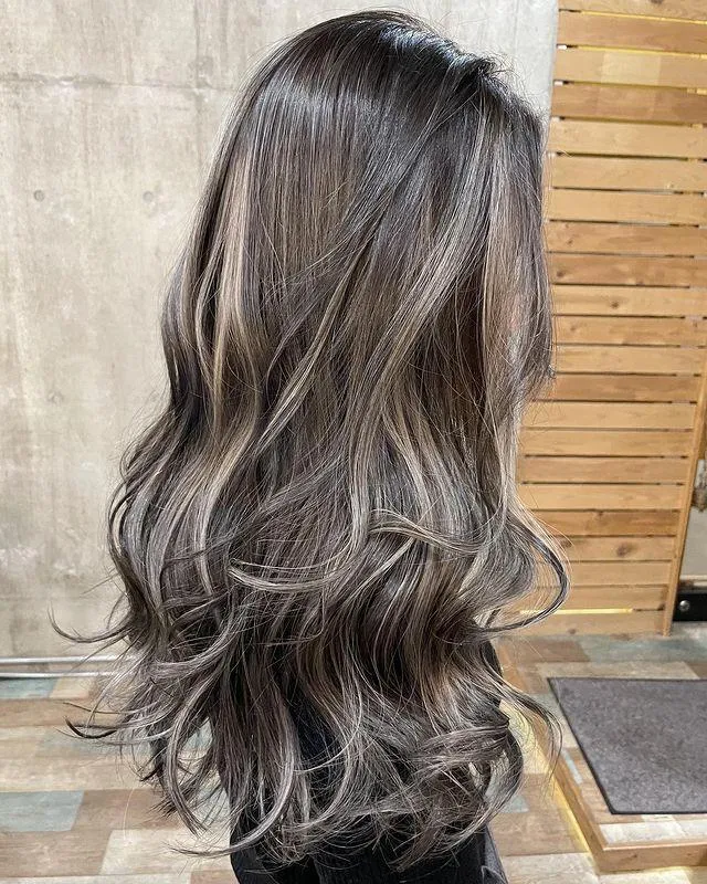 ロングヘアにハイライトで大人っぽい雰囲気に。ハイライトが入ることで一気に奥行きと立体感が増し、エレガンスな仕上がりを作ることができます。