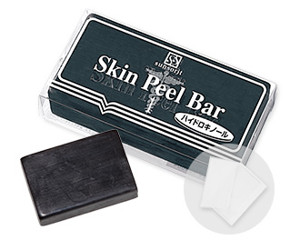 AHA配合のスキンピールバーに、ハイドロキノンとサリチル酸(BHA)を配合し、着色料を除いて炭で黒色化した固形石鹸です。